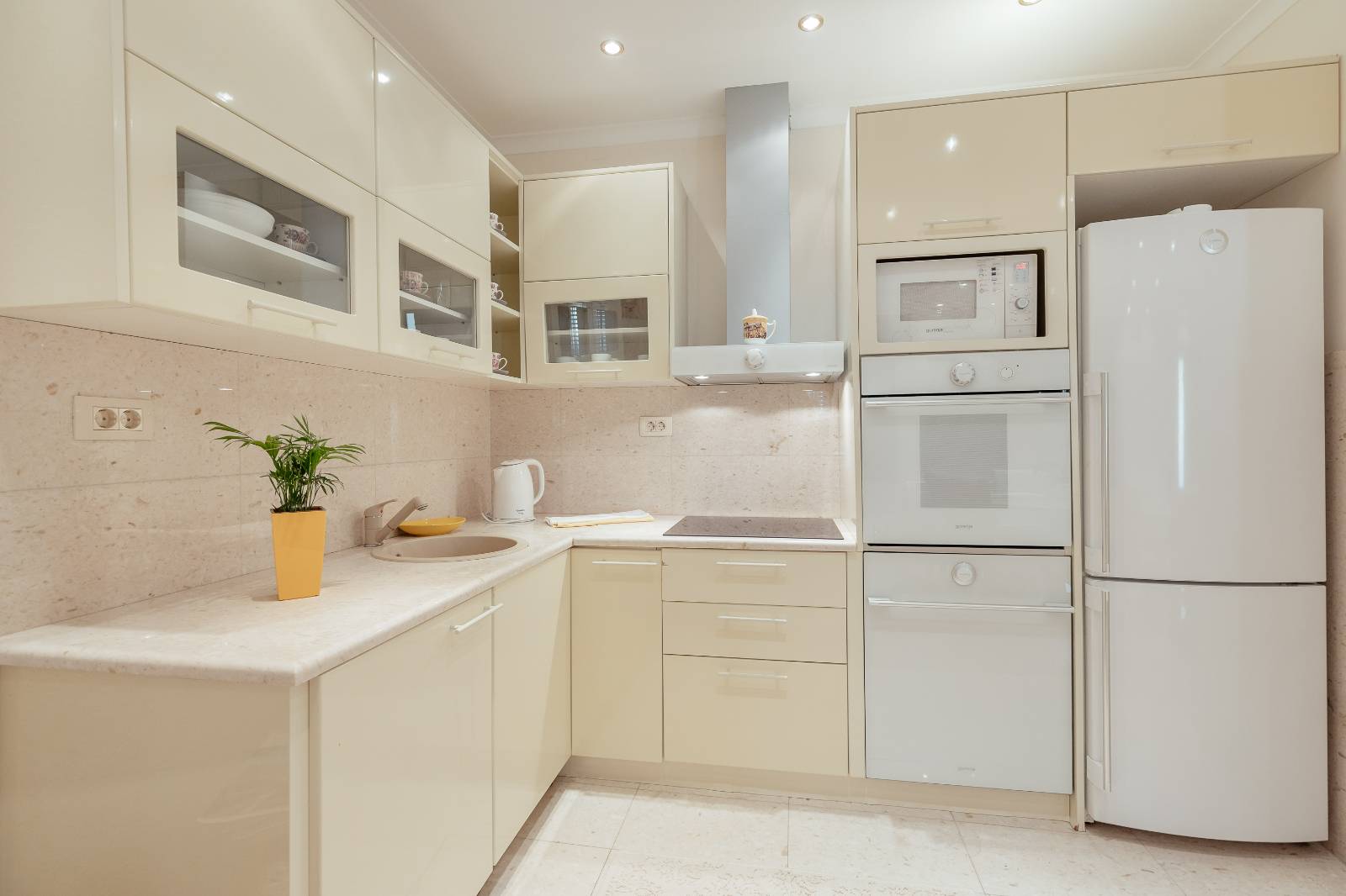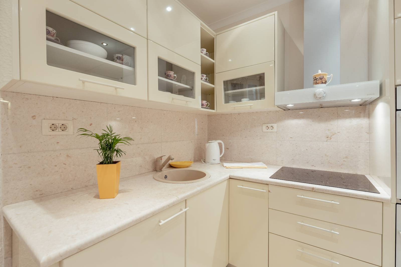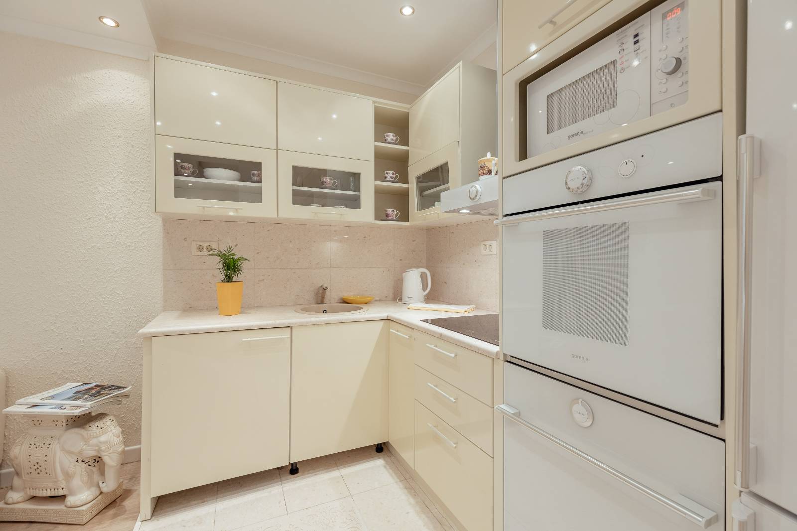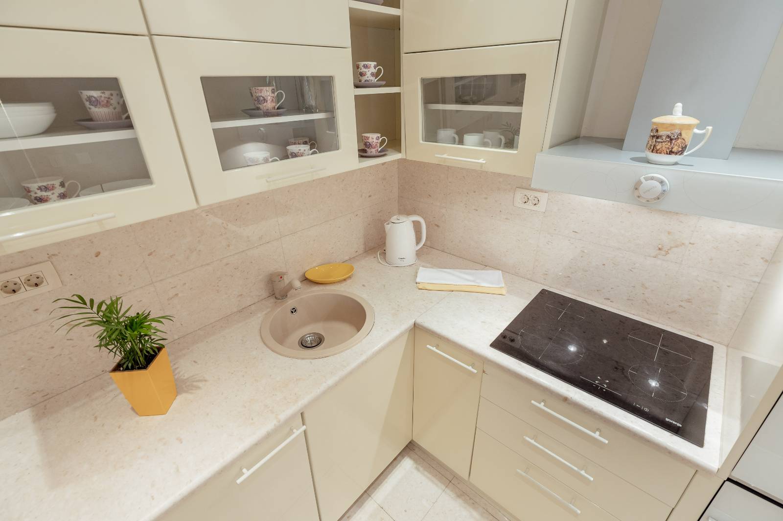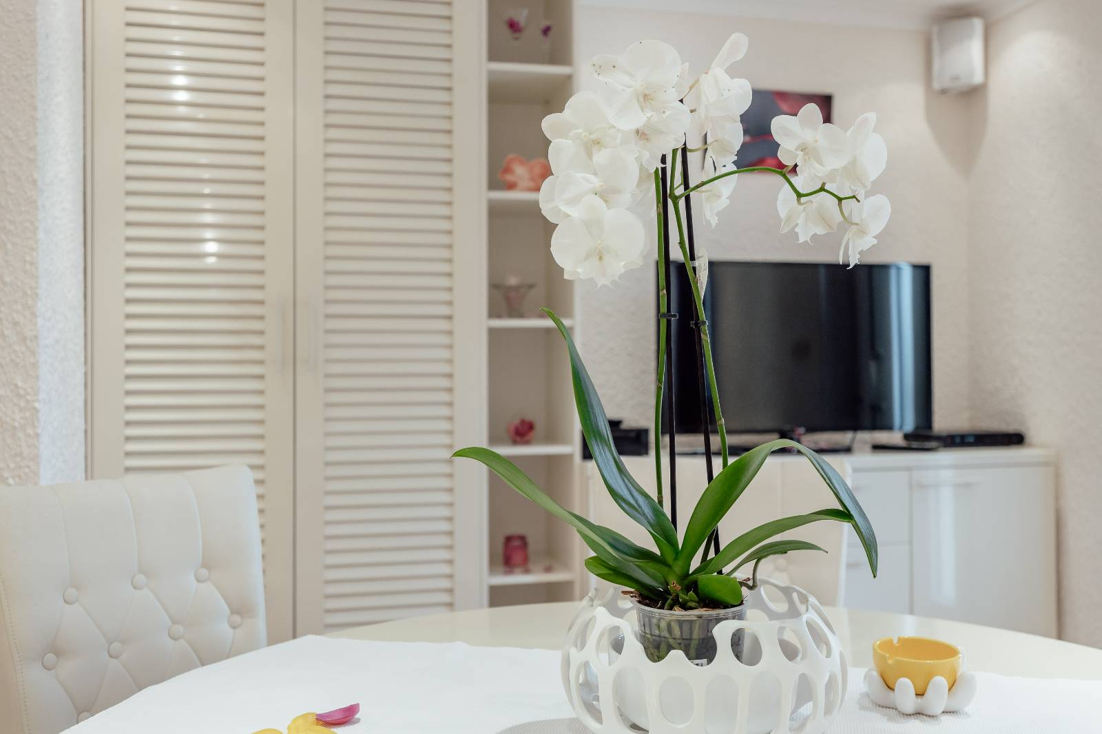 On the first floor, you’ll find a fully equipped kitchen with a dining area, a living room, and a bathroom.The second floor features two bedrooms, each with its own bathroom, a second living room with a pull-out sofa, and a terrace with a sea view.